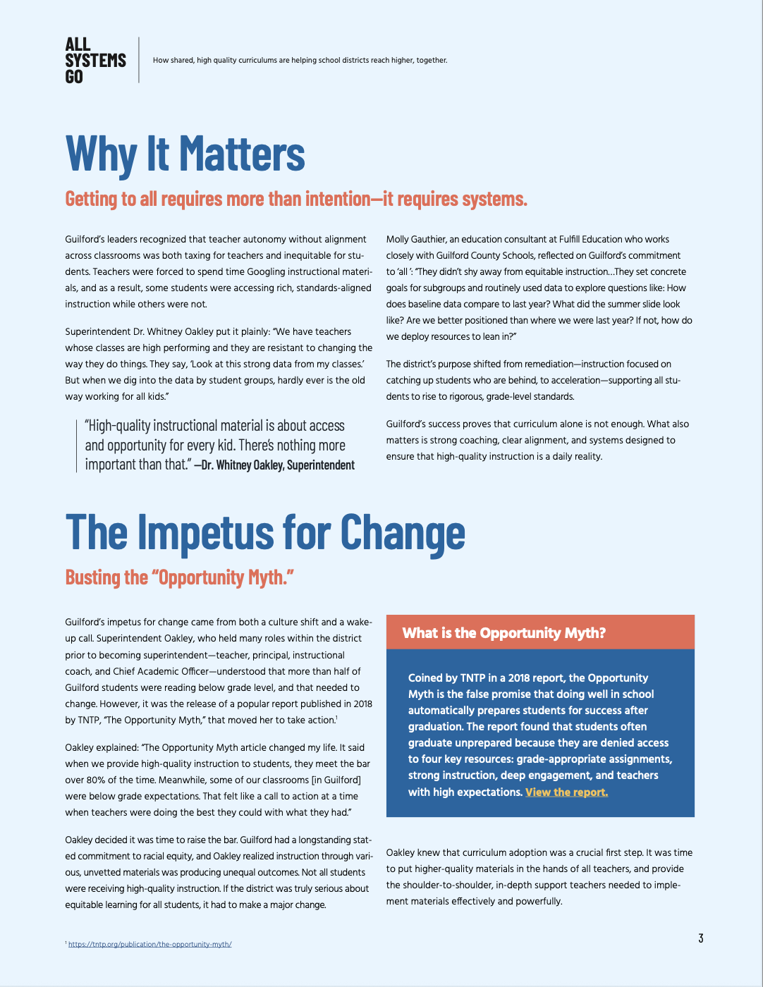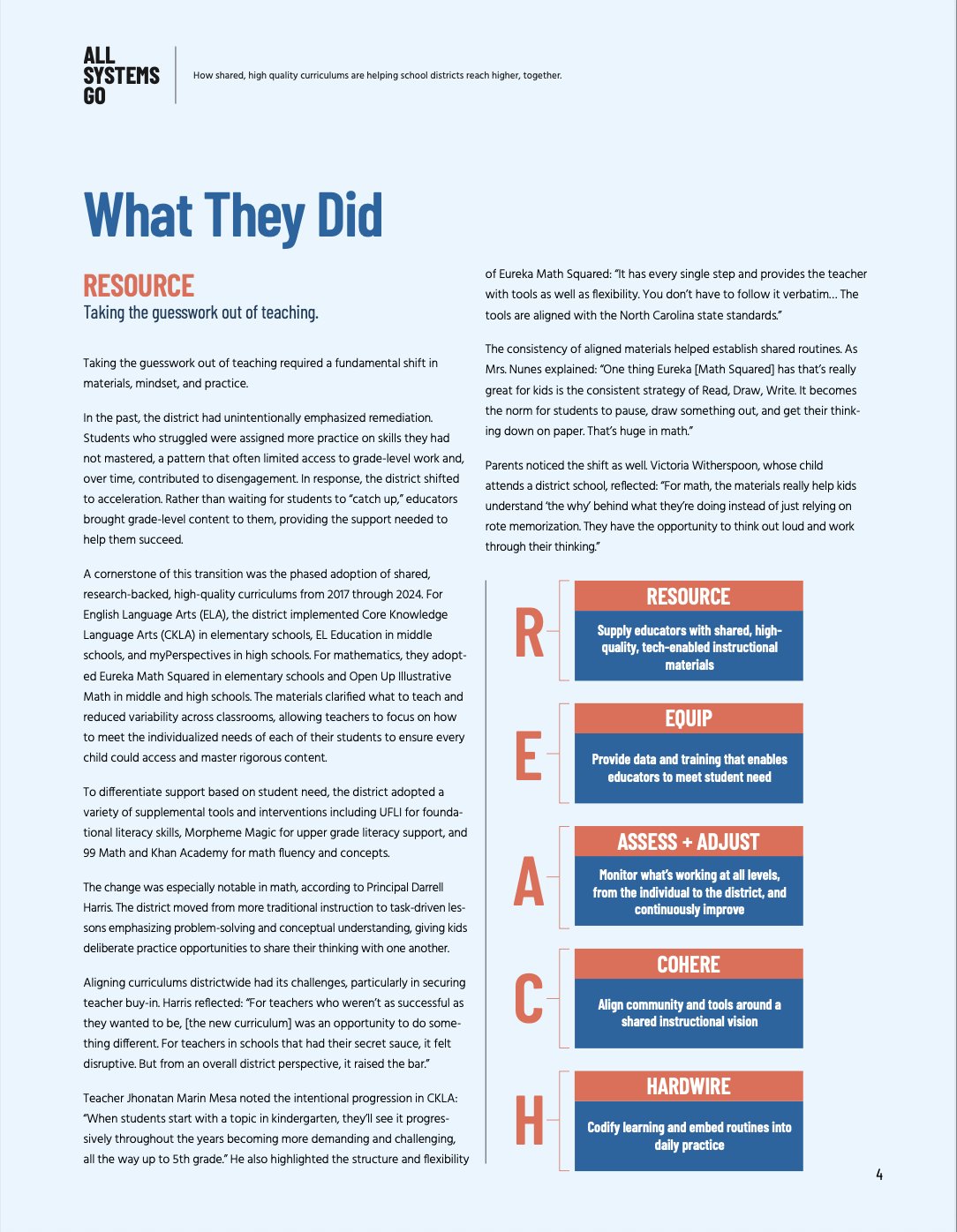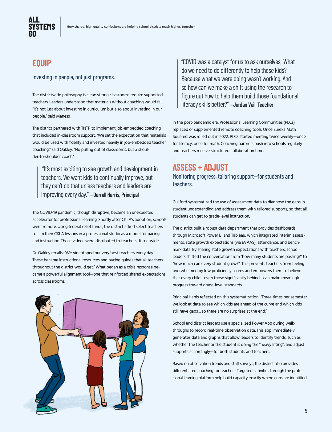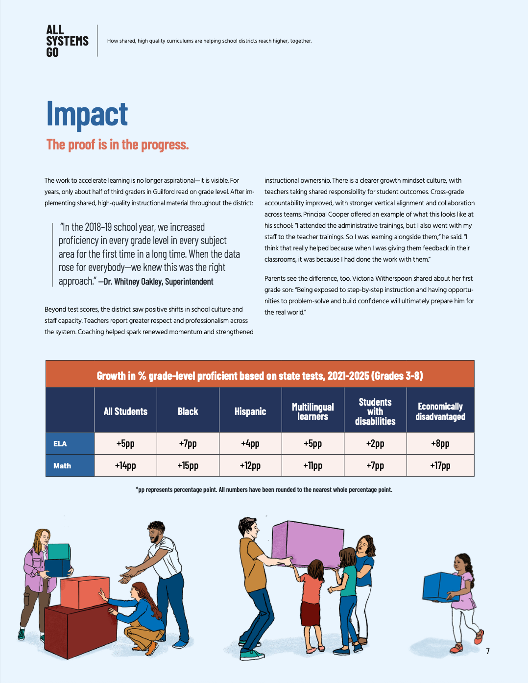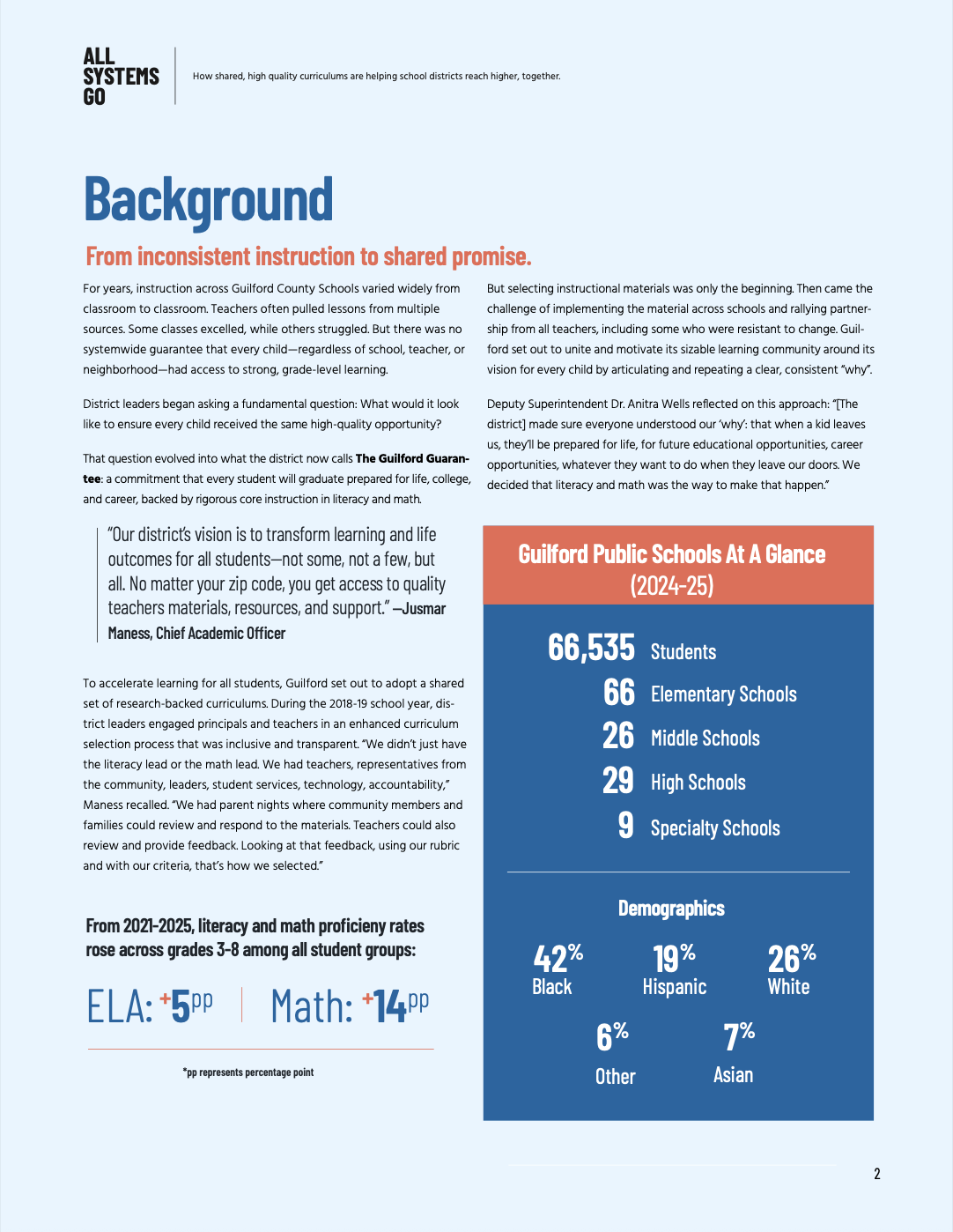 Guilford’s story is a lesson in what’s possible when education leaders pursue a fundamental question: What would it look like to ensure every child receives the same high-quality opportunities to learn? That question evolved into what the district now calls The Guilford Guarantee: a commitment that every student will graduate prepared for life, college, and career, backed by rigorous core instruction in literacy and math. The North Carolina district had a core belief that curriculum is the foundation for change. But its impressive growth in academic performance proves that curriculum alone is not enough. What also matters is strong coaching, clear alignment, and systems designed to ensure that high-quality instruction is a daily reality.