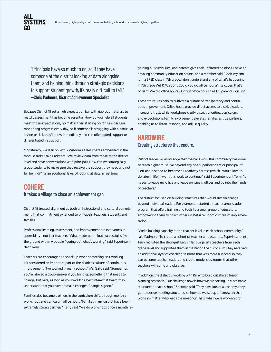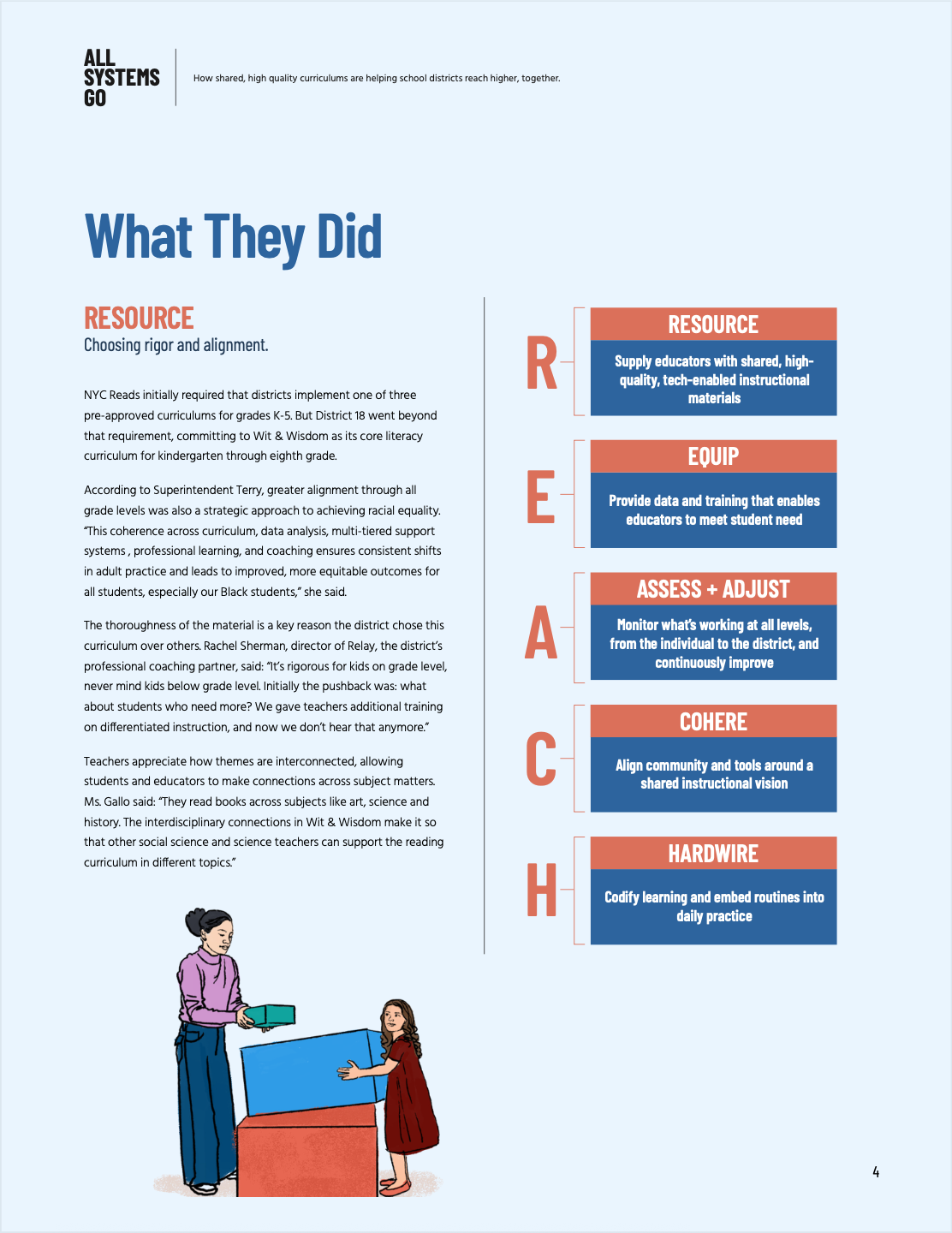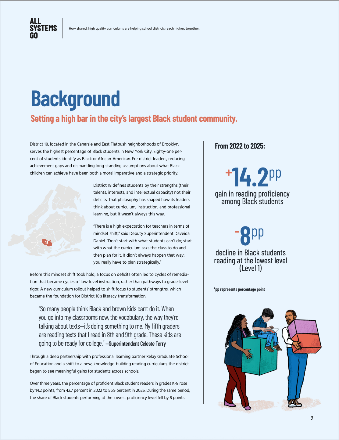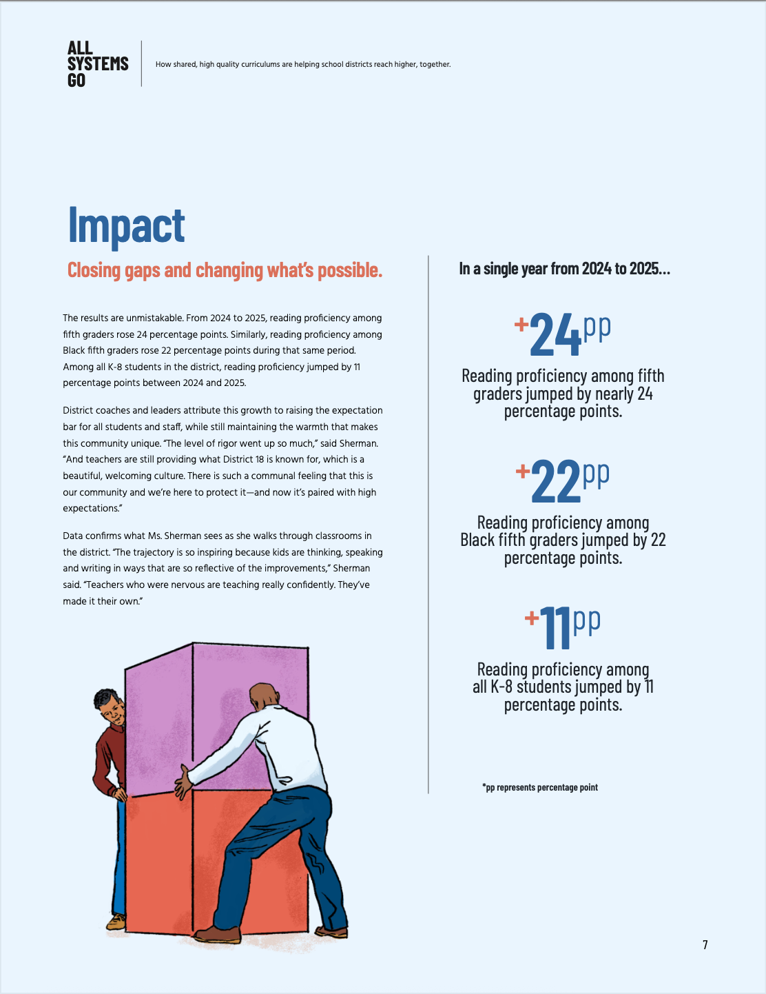 By maintaining high standards and equipping teachers, principals, and district leaders with high-quality materials and coaching, the district has shown that shared curriculums work—not just for students who were already on track, but also for those who have historically been underserved.